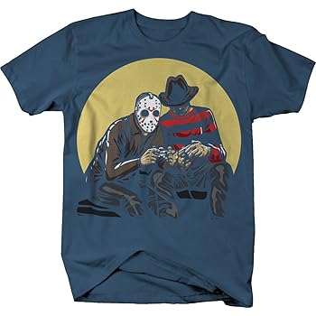 Amazon Com M22 Horror Scary Movie Villains Playing Video Games Jason Freddy Tshirt 4xl Jet Black Clothing